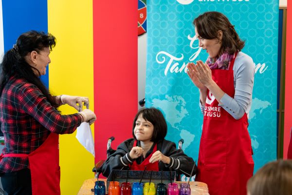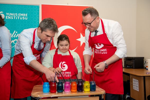 Yunus Emre Enstitüsü Romanya Koordinatörü Mustafa Yıldız “Tüm özel çocuklarımızın hayata sımsıkı sarılması, hiçbir önyargı ve ayrımcılığa tabi tutulmadan yaşam sürmesi toplum olarak hepimizin sorumluluğudur. Önemli olan sanatsal değeri olan bir ebru yapmak değil, çocukların bu süreçte zihnini, duygularını ve bedenini bütünleştirmesini sağlamak ve sabretmesini öğretmektir. Yunus Emre Enstitüsü olarak toplumun bütün kesimine hitap etmeye devam edeceğiz.” Şeklinde konuştu.