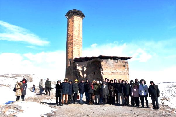 Kurulduğu günden bu yana 23 medeniyete ev sahipliği yapan, aynı zamanda Kafkaslar'dan Anadolu'ya ilk giriş kapısı olan Ani'yi, dondurucu soğuğa rağmen ilgiyle gezen heyet, antik kentin barındırdığı eserlere hayran kaldı.