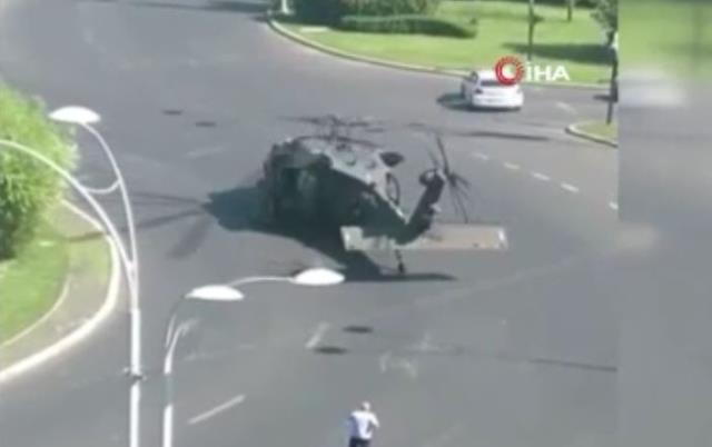 Helikopterin iniş sırasında iki sokak lambasını parçaladığı ifade edilirken, helikopterin uçuş sırasında aniden irtifa kaybettiği bildirildi.