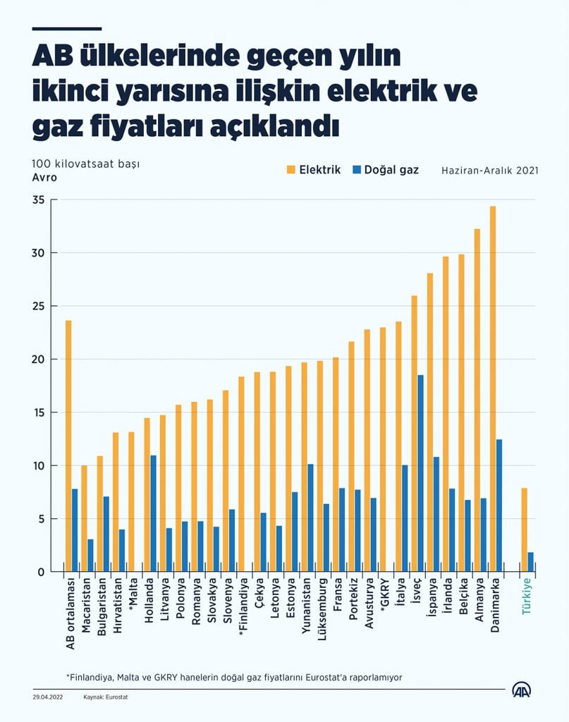 *AB ülkelerinde geçen yılın ikinci yarısına ilişkin elektrik ve gaz fiyatları açıklandı