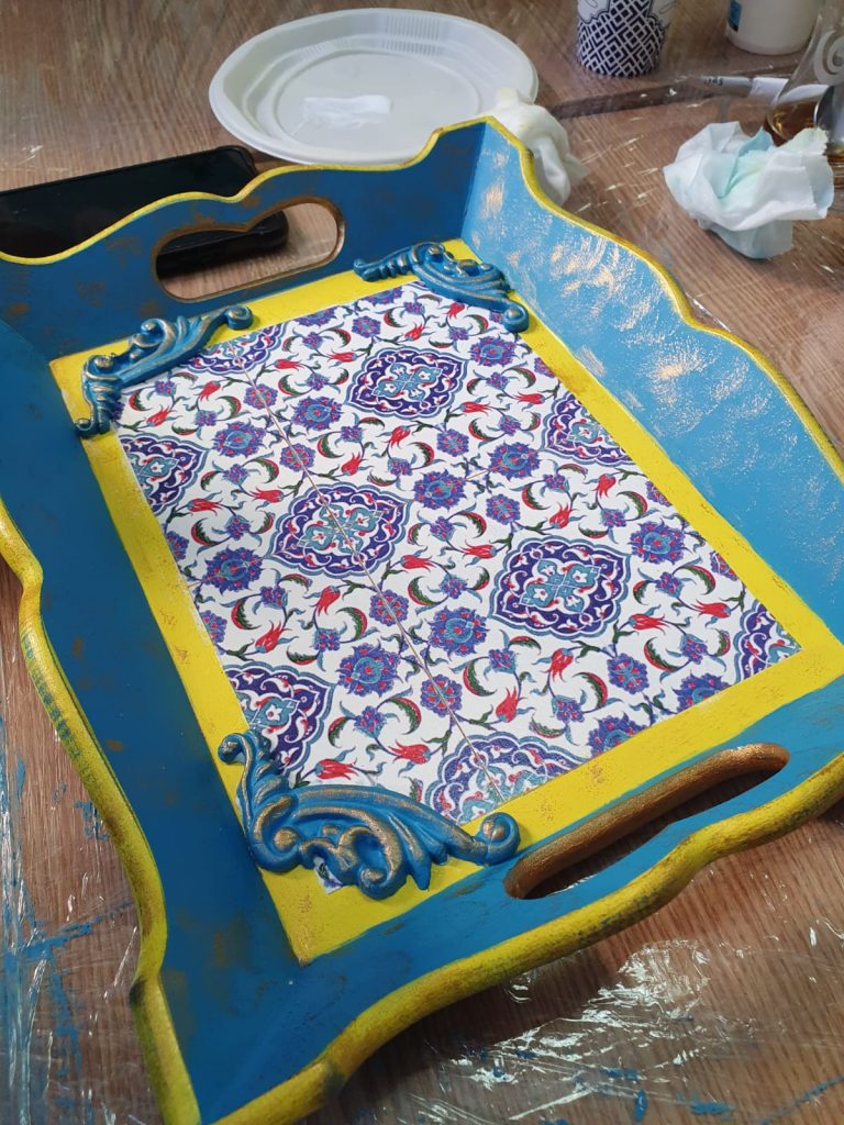 “Bir fincan kahvenin kırk yıl hatırı vardır" atasözünden yola çıkarak açılan Ahşap ve Seramik Üzerine Boyama Atölyesinde kursiyerler ahşap tepsi ve seramik kahve fincanları ve tabakları üzerine sulu transfer tekniğini uygulayacaklar. Ahşap sanatının inceliklerini ve Türk kültürünün naif tasarımlarının işlendiği bu eğitim boyunca kursiyerler hem kültür öğelerinin sanata yansıtılmasını deneyimleme fırsatı bulacaklar hem de enstitümüz sayesinde sanatsal becerilerini geliştirme şansı bulacaktır.