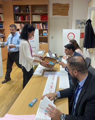 Bükreş’te oy verme işlemi devam ederken, görevleri başında ayrılamayan sandık kurulu görevlilerine ikram Bükreş Büyükelçimizin eşi Alı Altan Hanımefendiden geldi.