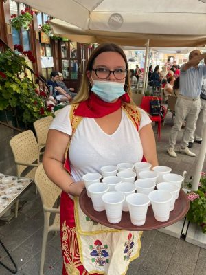 Aşure dağıtımına geçmeden önce katılımcılara tarçın kokulu şerbet ikram edildi.