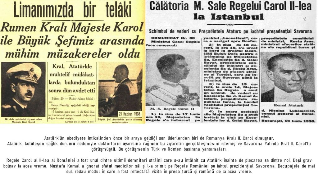 BÜKREŞ (Gazete Balkan)- Bükreş Büyükelçiliği sosyal medya hesabında 10 Kasım’da ebediyete uğurlanışının 82’inci yılında andığımız Türkiye Cumhuriyeti Devleti’nin kurucusu Gazi Mustafa Kemal Atatürk’ün Romanya ile ilişkilerimizi anlatan söz ve fotoğraf kupürlerine yer verdi.