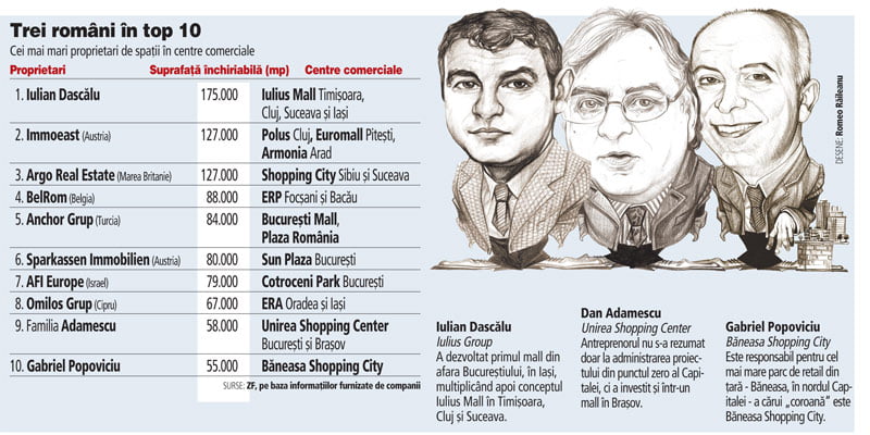 Rumen girişimcilerin uluslararası şirketlerle rekabet eden pazarda kalmayı başardığı bu iş, Finans gazetesi ZF'nin bir analizine göre, ilk on AVM sahiplerine yıllık 200-250 milyon Euro arası kira geliri getiriyor.