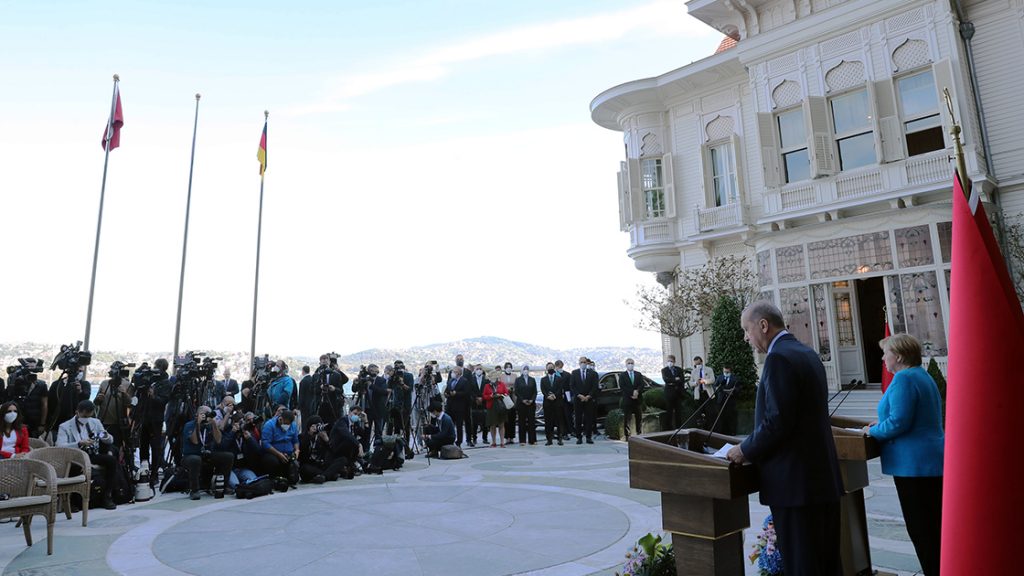 Erdoğan ve Merkel, Huber Köşkü'ndeki ikili görüşmelerinin ardından ortak basın toplantısı düzenledi.