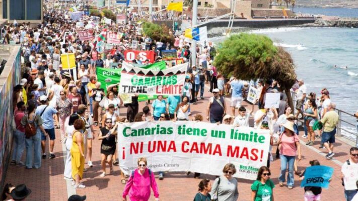 İspanya’nın Kanarya Adaları’nda Nisan ayında düzenlenen bir protestoda turistlere karşı taşınan bir pankartta, “Topraklarıma saygı duyun” yazıyordu.