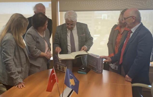 Ziyaret sırasında heyet üyelerine Çevik tarafından Balkanlar’ın altı şehri Üsküp, Manastır, Prizren, İpek, Selanik ve Yanya’nın geçmişine adanmış altı yayınlık Osmanlı arşivlerinden Osmanlıca, Türkçe ve Arnavutça belgelere dayanarak hazırlanan eserler hediye edildi.