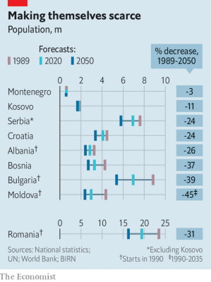İngiliz The Economist dergisinin yaptığı bir analize göre, Balkanlar'da nüfus azalıyor ve yaşlanıyor, bu değişmezse durum daha da kötüye gidecek.
