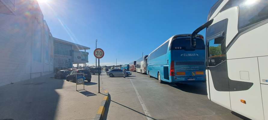 Bulgaristan gümrüğünden çıktıktan sonra en az 50 adet otobüsün Türkiye’ye giriş yapmak için beklediği görülüyor.