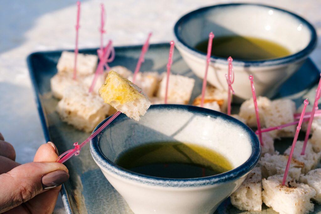*İzmir’de düzenlenen etkinlikte Romanya’nın İzmir Başkonsolosluğu tarafından beş yıl önce dikilen zeytin ağaçlarından ilk hasadından elde edilen yağın tadım ve sunumu yapıldı