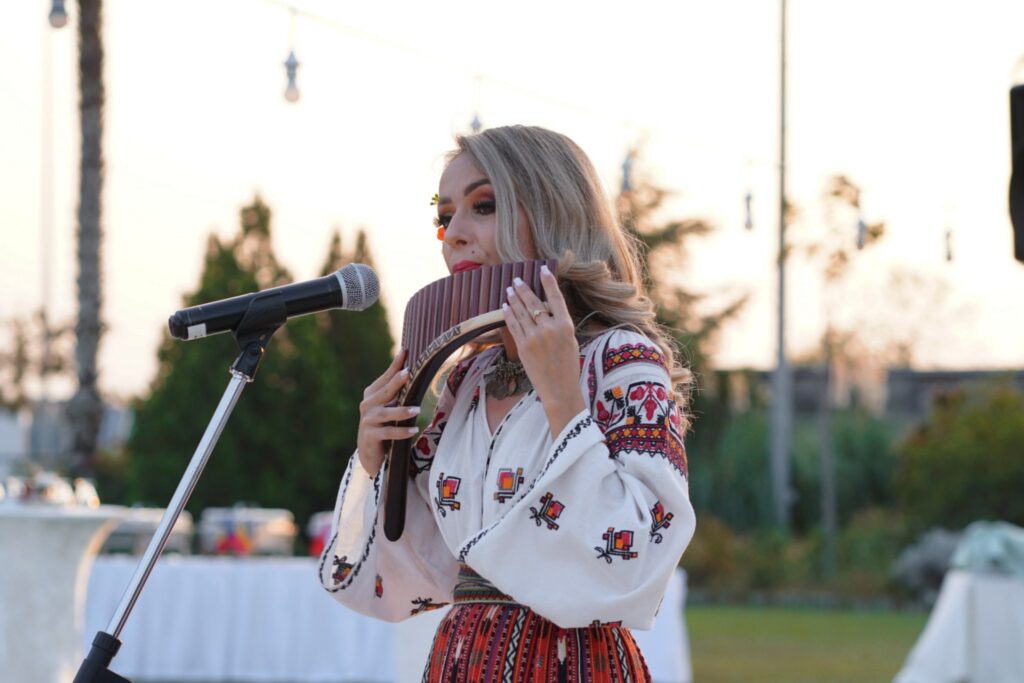 Etkinlikte sanatçı Loredana Streche, söylediği Romen halk şarkılarıyla değil, aynı zamanda nai enstrümanında icra edilen şarkılarla da konukları memnun etti.