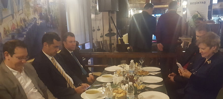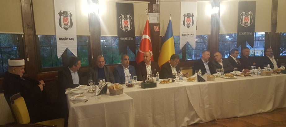 Romanya Beşiktaşlılar Derneği Başkanı Rıza Türkmen ve Alper Yollu’nun ev sahipliği yaptığı iftar yemeğine Bükreş Büyükelçiliği Birinci Katibi Ufuk Türkkan, Beşiktaş Kongre Üyeliği dahil çeşitli kademelerinde görev almış olan TİAD Başkanı Ufuk Tandoğan, DEİK Türkiye-Romanya İş Konseyi Başkanı Ömer Süsli, DEİK Türkiye-Romanya İş Konseyi Başkan Yardımcısı Güven Güngör, Romanya Galatasaraylılar Derneği Başkanı Ali Rıza Koska, Romanya Fenerbahçeliler Derneği Başkanı Olcay Kızıl, Romanya Trabzonsporlular Derneği’nden Mehmet Fazlıoğlu, Romanya Alevi Kültür Merkezi Başkanı Şakir Aydoğan, soydaş dernekleri başkanları ve mensupları ile Beşiktaş taraftarları katıldı.