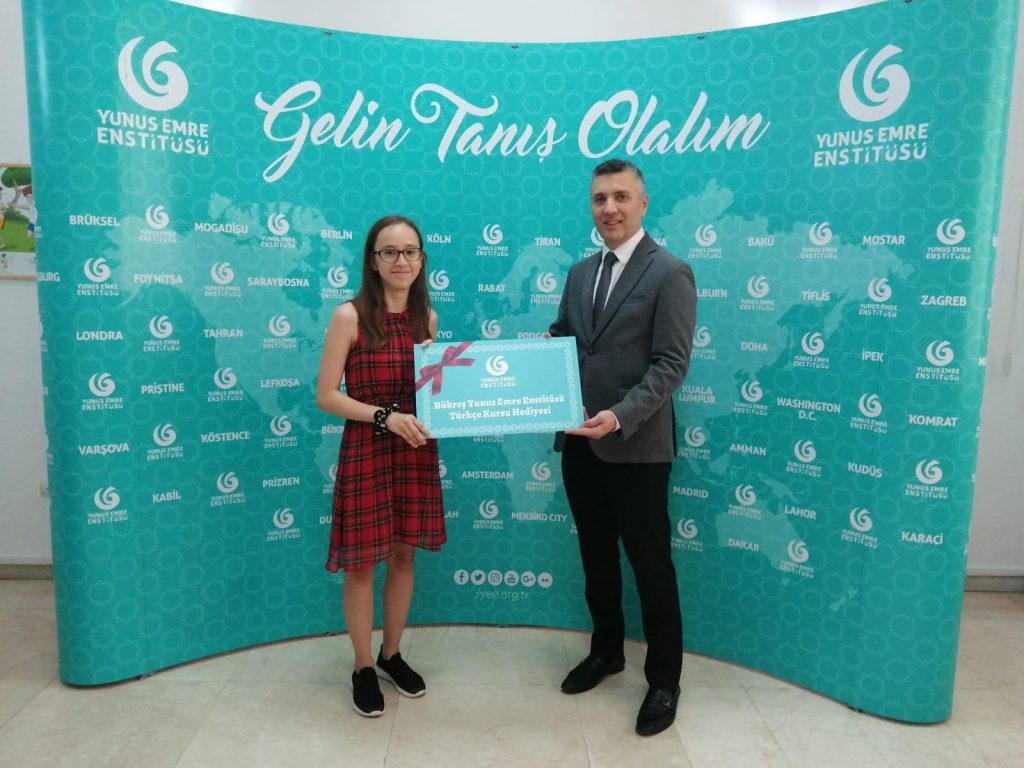 Romanya’da Bükreş Yunus Emre Enstitüsünün organize ettiği ve Türk Hava Yollarının sponsor olduğu “Bil Kazan” isimli bilgi yarışmasının Bükreş Büyükelçiliği Müsteşarı Evren Güner, Türk Hava Yolları Bükreş Müdürü Ahmet Akpınar ve ev sahibi Bükreş Yunus Emre Enstitüsü Müdürü Mustafa Yıldız’ın katılımıyla kısa bir ödül töreni düzenlendi.