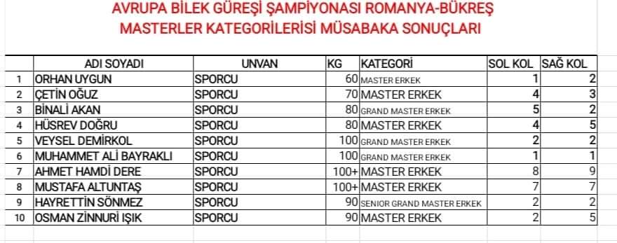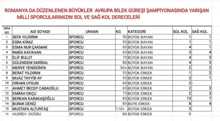 *Romanya’da düzenlenen Avrupa Bilek Güreşi Şampiyonasında Büyük Bayan Milli Takımı Avrupa Şampiyonu oldu