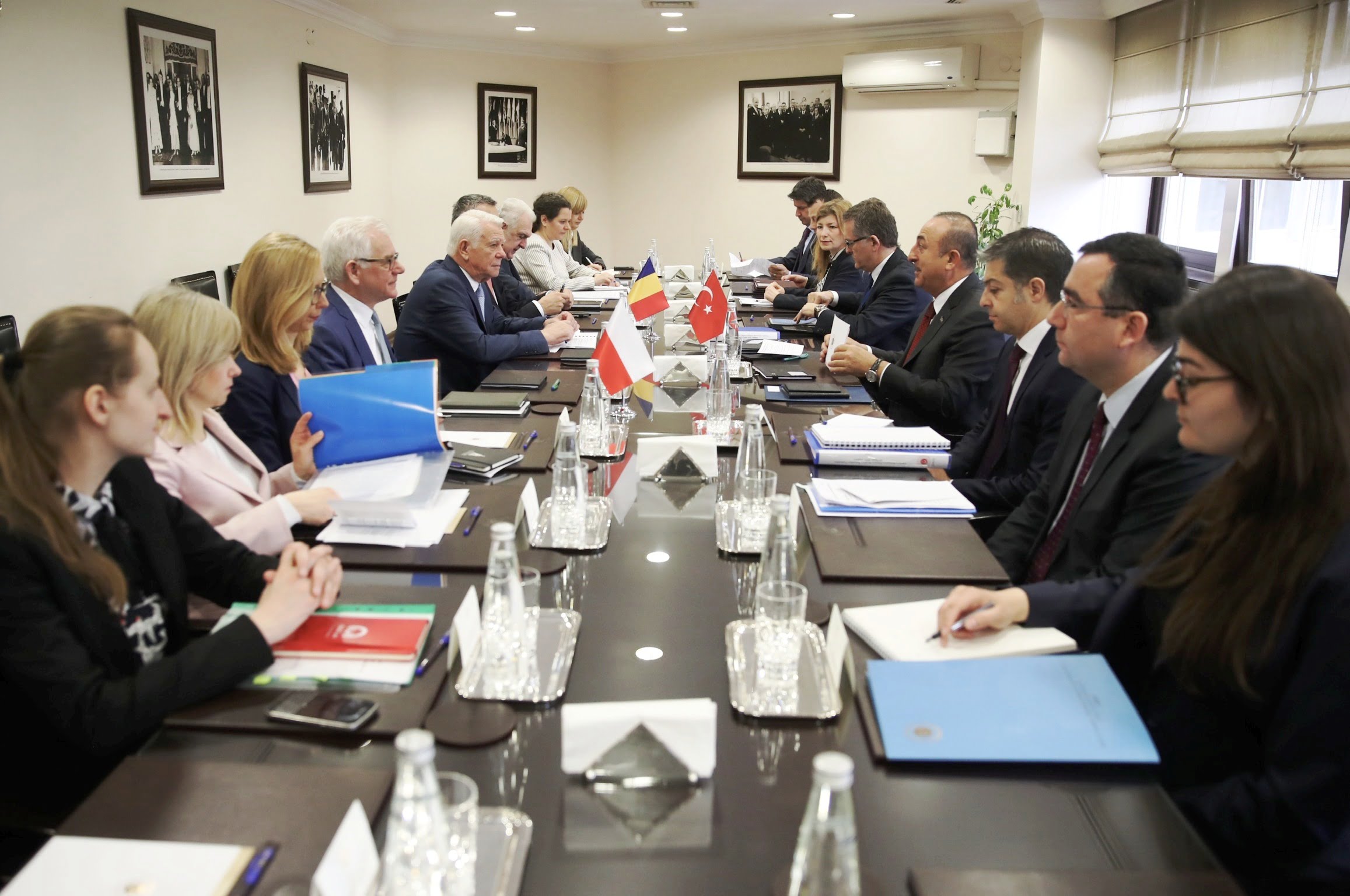 Çavuşoğlu, beşinci defa gerçekleştirilen Türkiye-Polonya-Romanya Dışişleri Bakanları Üçlü Toplantısı'nın ardından Romanya Dışişleri Bakanı Teodor Melescanu ve Polonya Dışişleri Bakanı Jacek Czaputowicz ortak basın toplantısı düzenledi.