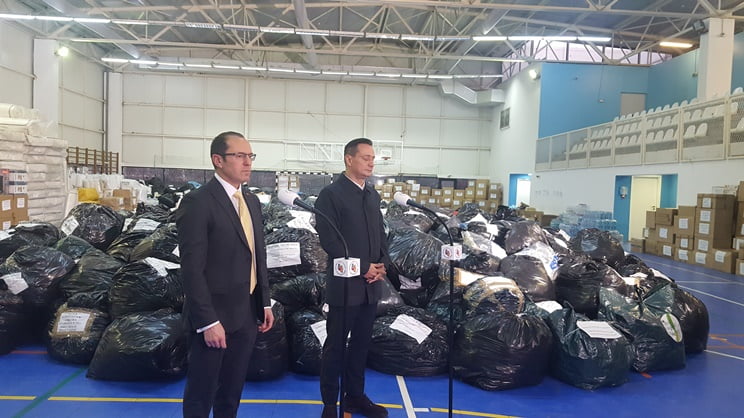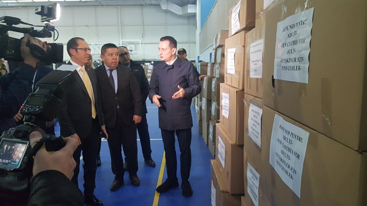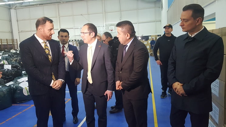 Tırlara yükleme yapılması vesilesi ile yardımların toplandığı Dacia Teknoloji Lisesi spor salonunda bir basın toplantısı gerçekleştirildi. Basın toplantısına 4’üncü Bölge Belediye Başkanı Daniel Băluță ve Türkiye’nin Bükreş Büyükelçisi Özgür Kıvanç Altan katıldı. Romanya Müftüsü Yusuf Murat da basın toplantısında hazır bulundu.