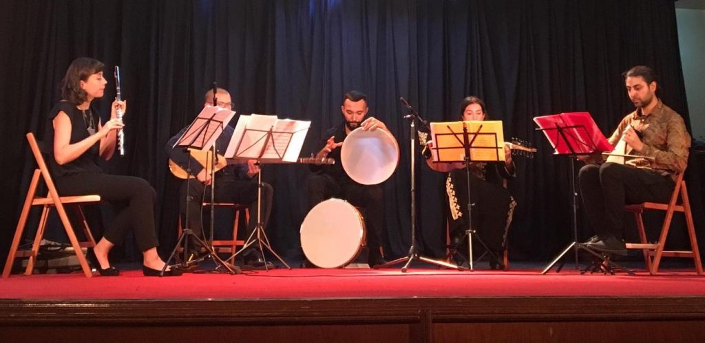 Bükreş Orduevi’nde verilen Konserde Noma Shkeir ud, Iona Balaşa flüt, Feras Sarmin klasik kemençe ve keman, Cosmo tef, Sian Brie bağlamada hünerlerini sergilediler.