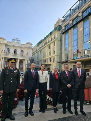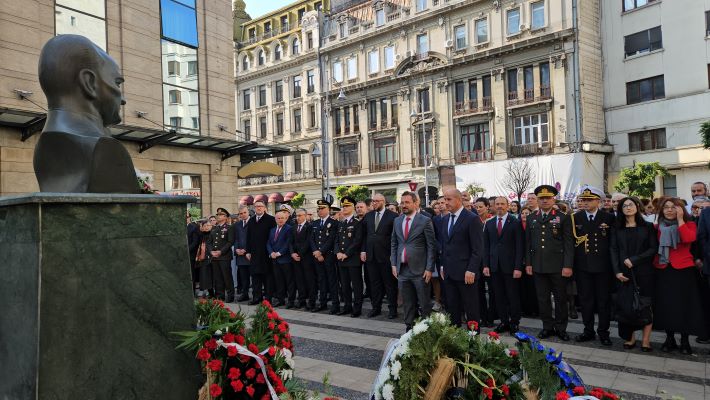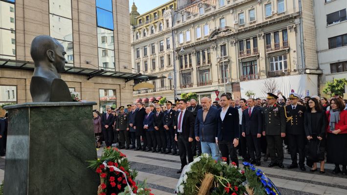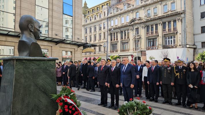 Tören, saygı duruşu ve milli marşımızın okunması ile başladı. Daha sonra Türkiye Cumhuriyeti Bükreş Büyükelçisi Özgür Kıvanç Altan Atatürk Büstü’ne çelenk koyarak saydı duruşunda bulundu.