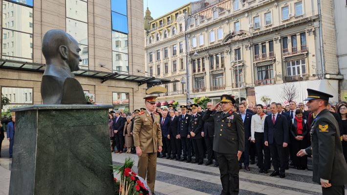 Bükreş’in en işlek caddelerinden biri olan Zafer Yolu (Calea Victoriei) caddesi üzerindeki Atatürk Büstü başında gerçekleştirilen törene vatandaşlar ve soydaşlar yoğun ilgi gösterdi. Törene Sibiu’daki NATO Çok Uluslu Güneydoğu Kolordusu Komutan yardımcısı Tümgeneral Abdullah Soydemir ve Romanya’daki diğer NATO birimlerinde görev yapan Türk askeri temsilcileri ile Büyükelçiliğe bağlı kurum ve kuruluş temsilcileri de katıldı.