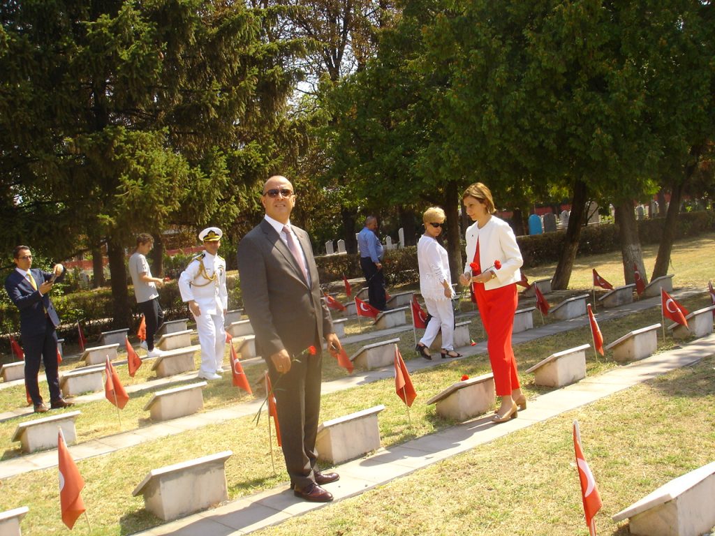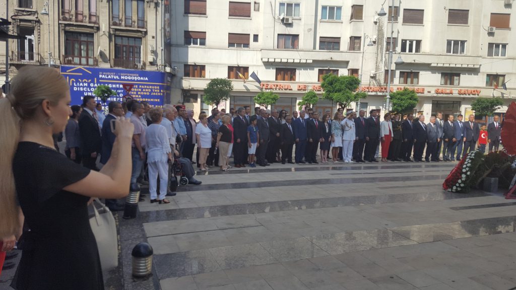 İkinci tören ise Bükreş Türk Şehitliği’nde gerçekleştirildi. Buradaki törende Şehitlik Anıtına Bükreş Büyükelçisi Füsun Aramaz tarafından çelenk konularak saygı duruşunda bulunuldu, istklal Marşı okundu.