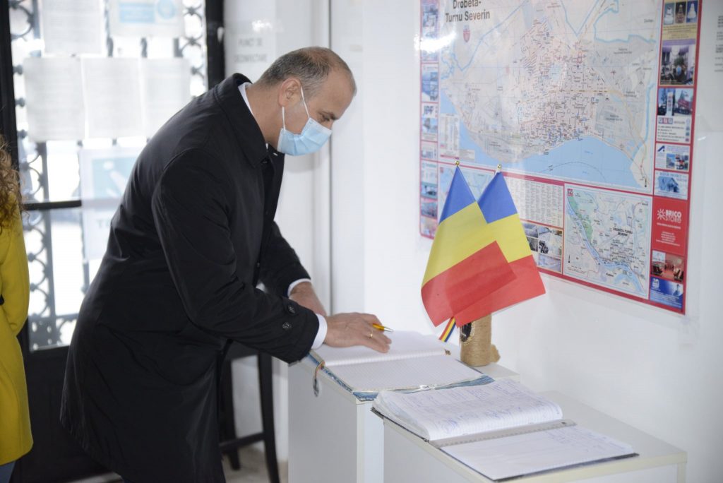 Büyükelçi Aramaz ve TİAD heyetinin Sanat Müzesi ziyaretinde Mehedinte İl Meclisi Başkanı Aladin Georgescu ile birlikte Turnu Severin Belediye Başkanı Marius Screciu da hazır bulundular.