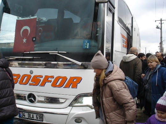 Daha sonra bu vatandaşların da otobüslerle Türkiye'ye gönderildiğini bildiren Aramaz, Türk vatandaşlarının Ukraynalı aileler ve çocuklarının da tahliye edildiğini vurguladı.