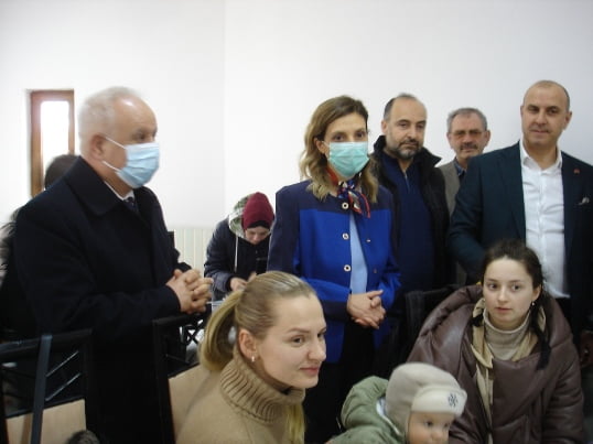 Büyükelçi Aramaz, Ukrayna’dan gelenlerin toplandığı merkezi ziyaret etti