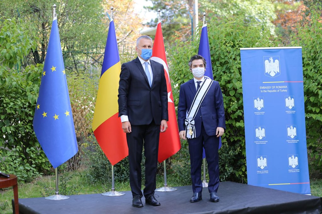 BÜKREŞ (Gazete Balkan)- 2018 yılında dönemin Bükreş Büyükelçisi Osman Koray Ertaş’a verilmesi kararlaştırılan Romanya’nın bir yabancı devlet adamına verdiği en büyük “Nişan” olan “Ordinul National ‘Pentru Merit’ - în grad de Mare Cruce”, Ankara’da Pazartesi günü Romanya Büyükelçiliği’nde düzenlenen törenle Büyükelçi Osman Koray Ertaş’a verildi.
