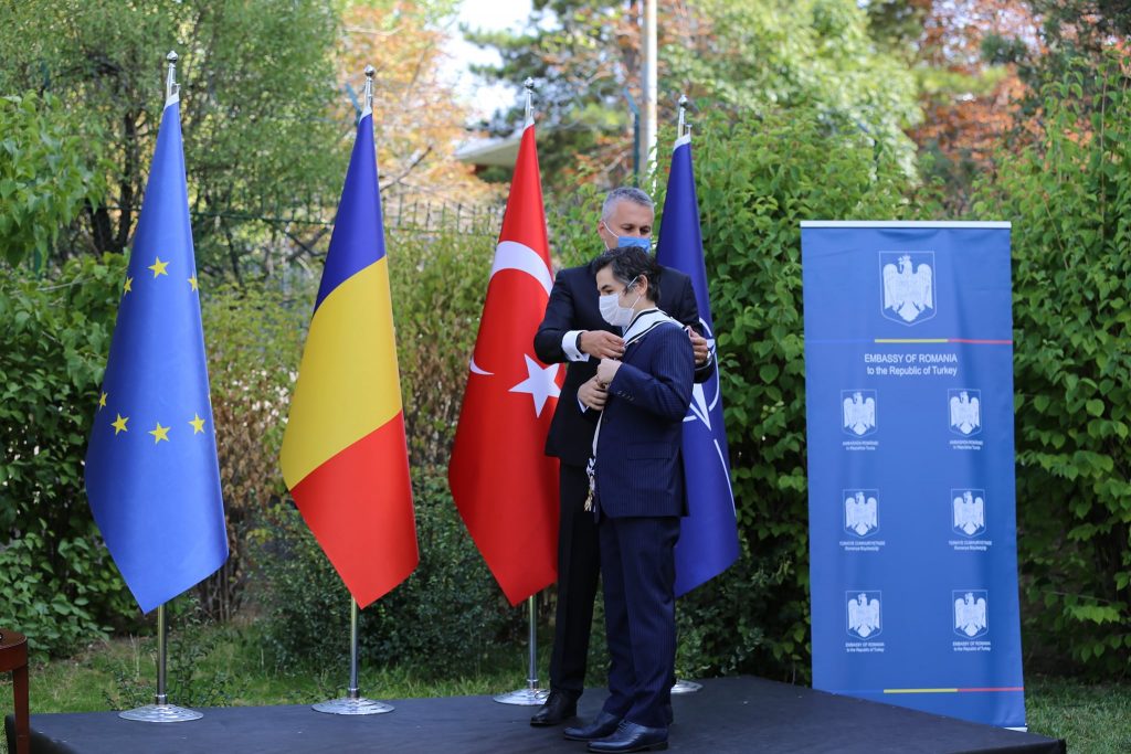 Büyükelçi Ertaş, Liyakat Nişanı’nı Romanya Cumhurbaşkanı Klausd Iohannis adına Büyükelçi Gabriel Şopanda’nın elinden aldı.