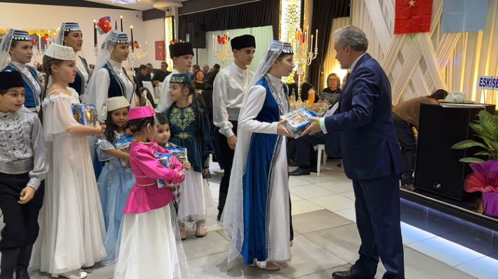 Gecede, Kırım Ailesi çocuklarına Ukrayna’nın Ankara Büyükelçiliği tarafından yeni yıl hediyeleri dağıtıldı. (QHA)