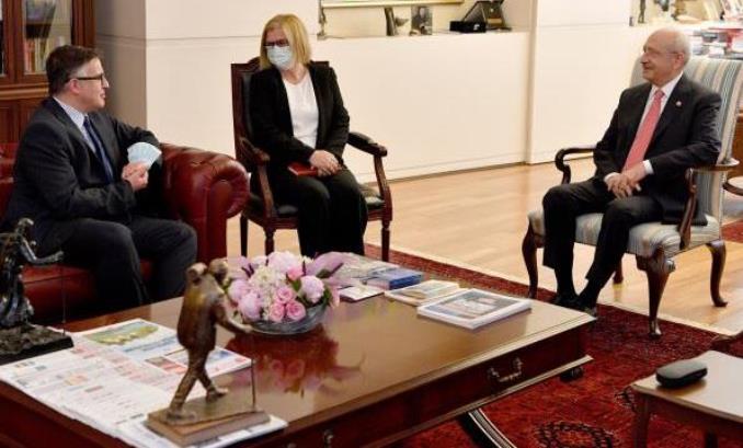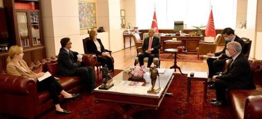 CHP'den yapılan açıklamada, Kılıçdaroğlu'nun Büyükelçi Tinca'yı parti genel merkezindeki makamında kabul ettiği belirtildi.