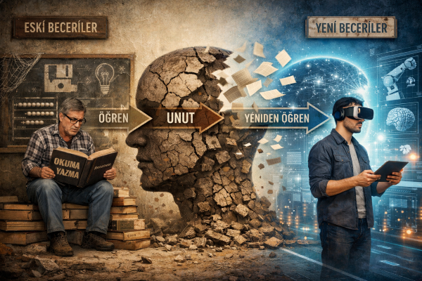 *İşler artık eskisi gibi değil, becerilerin %70'i değişiyor: "21. yüzyılın cahilleri okuma yazma bilmeyenler değil, öğrenmeyi, öğrendiklerini unutmayı ve yeniden öğrenmeyi beceremeyenler olacaktır"