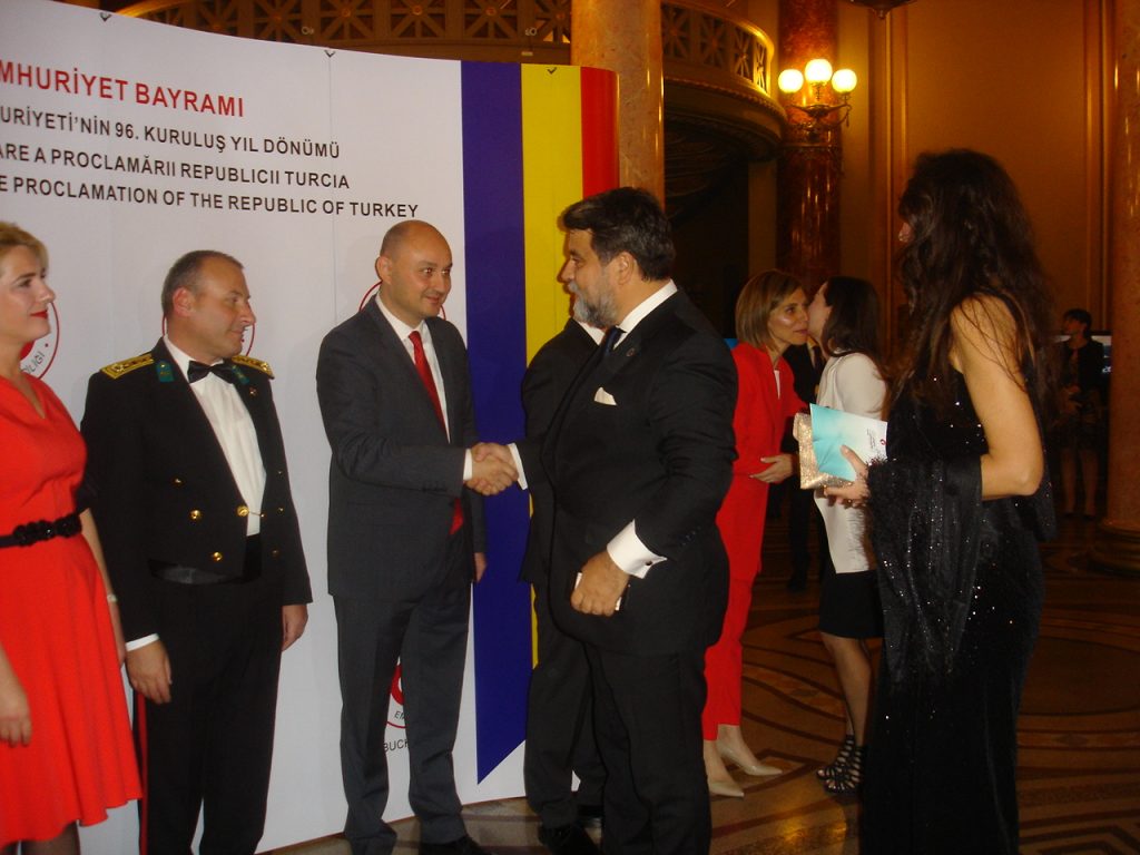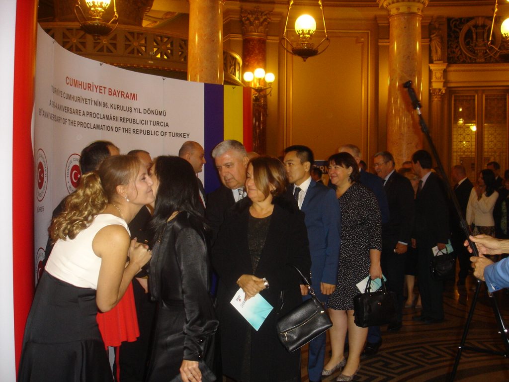 BÜKREŞ (Gazete Balkan)- Türkiye Cumhuriyetin kuruluşunun 96. yıl dönümü dolaysıyla Bükreş'teki Atatürk anıtı önünde ve Bükreş Türk şehitliğinde düzenlenen törenlerden törenlerden sonra yabancı misyon şeflerine yönelik bir de resmi kabul töreni düzenlendi.