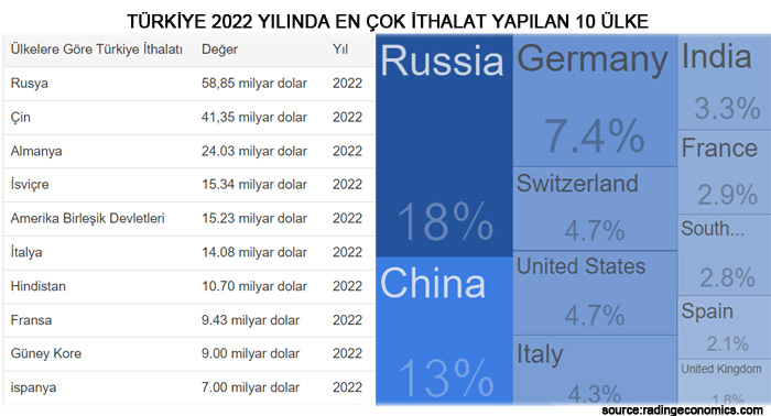 -En fazla ithalat Rusya ve Çin’den