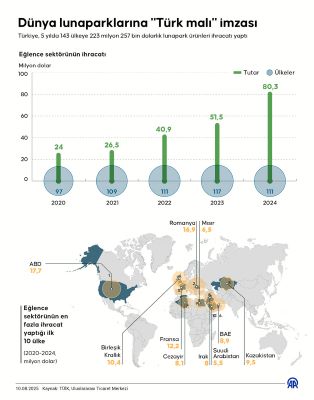 Böylece 5 yılda Türkiye'nin eğlence sektöründe ihracatı 223 milyon 257 bin dolar olarak hesaplanırken, ürün satılan toplam ülke sayısı 143 oldu.