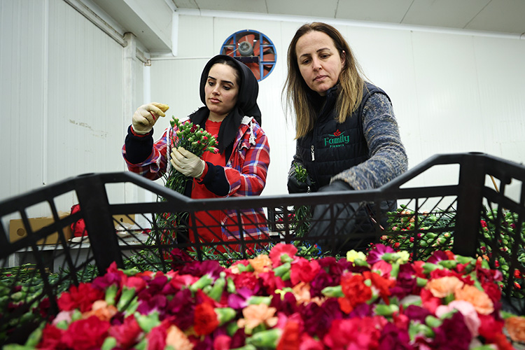 14 Şubat'a özel kırmızı ağırlıklı üretim yapıldığını anlatan Dumancı, "İhracatta en önemli ürünümüz karanfil. Sevgililer Günü için yüzde 60'a yakın kırmızı karanfil üretimimiz oldu. Sevgiyi ifade ettiği için 14 Şubat'ta daha çok kırmızı renk tercih ediliyor." diye konuştu.