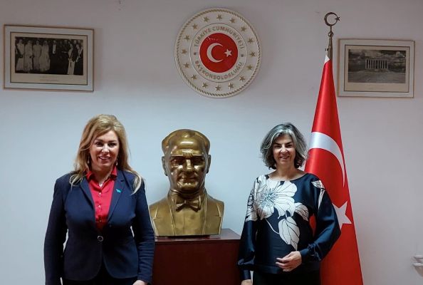 Kazakistan'ın Köstence Fahri Konsolosu ve Romanya Konaklama Endüstrisi Federasyonu Genel Sekreteri, Köstence RESTO Derneği Onursal Başkanı Corina Martin, Türkiye’nin Köstence Başkonsolosu Derya Dingiltepe’ye bir nezaket ziyareti gerçekleştirdi.