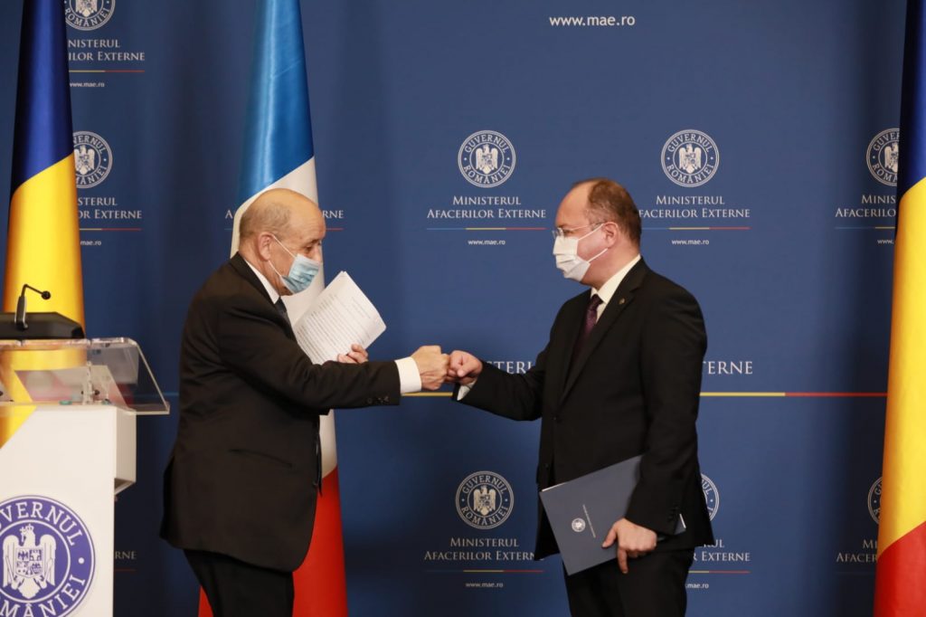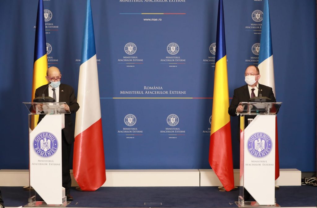 Romanya Dışişleri Bakanı Bogdan Aurescu ağırladığı Fransız mevkidaşı Jean-Yves Le Drian ile ikili siyasi istişareler konusunda ortak basın açıklaması yaptı.