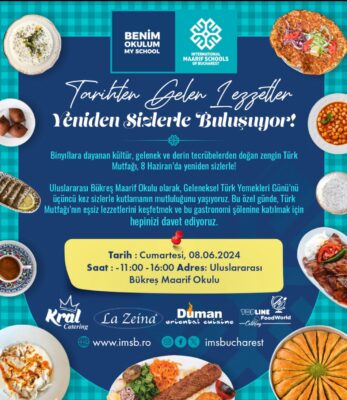 8 Haziran’da gerçekleşecek olan Geleneksel Türk Yemekleri Günü’nde, Türk mutfağının zenginliklerini keşfetmek isteyen tüm lezzet tutkunları ve kültür meraklıları Uluslararası Bükreş Maarif Okulu’nda buluşacak.