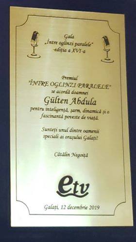 Galati kentinin özel inssanlarından biri olarak nitelendirilen Gülten Abdula’ya verilen Ödül gerekçesinde, “Zekice, dinamik, çekici ve büyüleyici bir yaşam öyküsü için” ifadeleri kullanıldı.