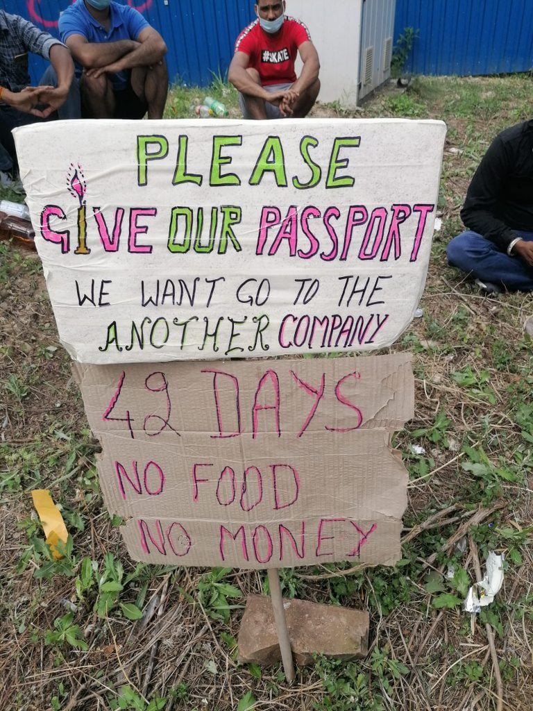 "Kimse bizden sorumlu değil. 33 işçiyiz. Pasaportumuz yok, bize yiyecek ve para vermediler. Kendimiz için üzgünüz. Kimse bizim için hiçbir şey yapmıyor. Çalışma Bakanı ile görüşmek istiyoruz " dedi.