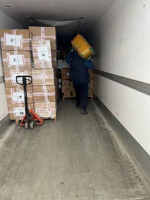 Bükreş’teki Su Market Sebze Meyve Hali’nde her gün saat 16:00’da Türkiye’ye doğru yardım TIR’ı çıkartma uygulaması devam ediyor.