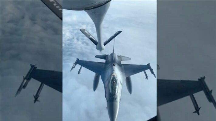 Bakanlığın sosyal medya hesabından paylaşılan görüntülere ilişkin, "Hava Kuvvetlerimize ait KC-135R tanker uçağı, Romanya sava sahasında Romanya Hava Kuvvetlerine ait 4 adet F-16 uçağına havada yakıt ikmal desteği verdi." bilgisi verildi.