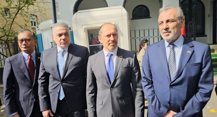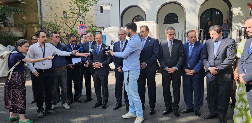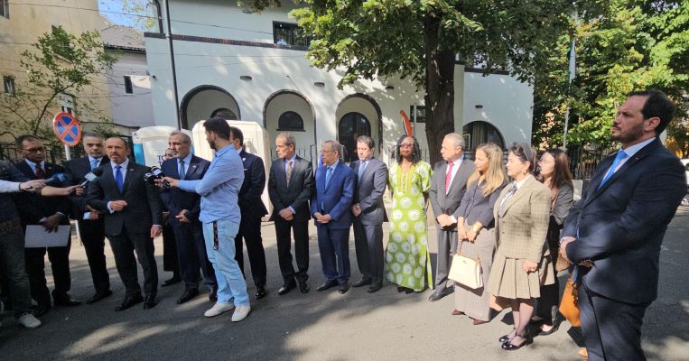 *İslam İşbirliği Teşkilatı üyesi ülkelerin Bükreş Büyükelçileri, Filistin Bükreş Büyükelçiliği önünde ortak basın açıklaması yaptı