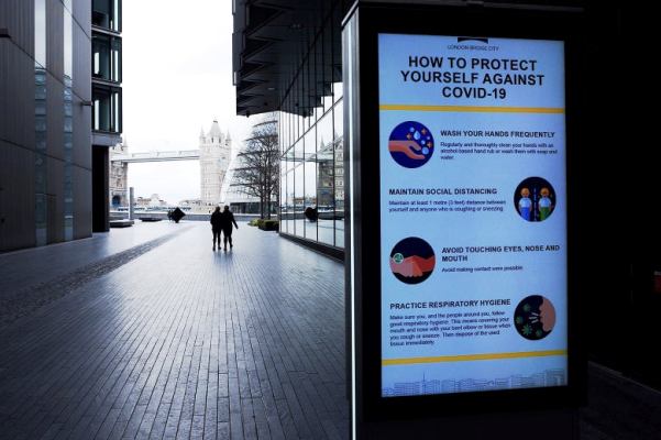 Dijital ekran Pazartesi (30 Mart) günü Londra'da koronavirüs koruma tavsiyesi veriyor.