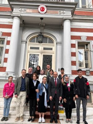 Erasmus+ Mesleki Eğitim kapsamında Bükreş "Scoala Gimnaziala Speciala pentru Surzi nr.1" okuluyla proje gerçekleştiren Gaziantep Ali Süzer Özel Eğitim Meslek Lisesinden işitme engelli öğrenciler ve refakatçı öğretmenler Bükreş Büyükelçiliği’ni ziyaret etti.