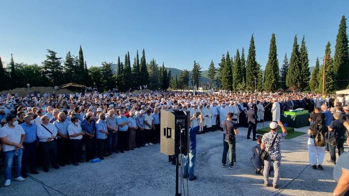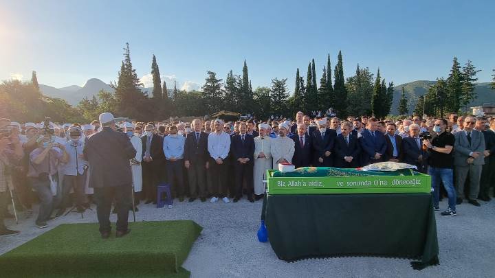Cenaze namazını kıldıran Erbaş da törendeki büyük kalabalığa dikkati çekerek, "Bizler de musallaya gelip böyle namazımız kılındığında, namazımızın kalabalık cemaatlerle kılınmasını Rabb'im nasip eylesin." diye konuştu.