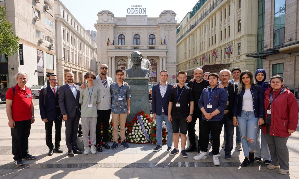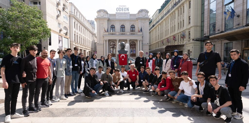 Erasmus programı kapsamında Romanya’ya gelen Isparta mesleki eğitim staj grubu öğretmenleri Mehmet Demircan, Gülcan Hörüken ve Halil Özdemir ile Romaero, Holardev SRL şirketlerinde bilişim teknolojileri, 3d tasarım ve uçak bakım alanlarında staj yapan öğrenciler Odeon Meydanı’nda bulunan Atatürk büstüne gelerek istiklal marşımızı söyledi ve Gazi Mustafa Kemal Atatürk büstü önünde saygı duruşunda bulundu.