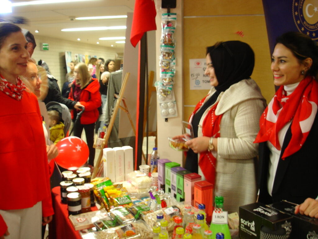 Bükreş’te bulunan 55 ülke Büyükelçiliğinin katılımı ile Milli Kütüphane’de gerçekleşen Kermese Türkiye Cumhuriyeti Bükreş Büyükelçiliği, Yunus Emre Enstitüsü, Maarif Vakfı, TİAD ve THY olmak üzere farklı kurum ve kuruluşların katkılarıyla kurulan Türkiye standına bu yıl da ilgi oldukça fazlaydı.